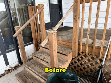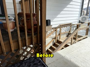 I spent a good part of this last week wrapping up Lisa's deck facelift project. It's definitely one of my favorite projects. She wasn't in any rush so I broke up the project into chunks of time through the month of February, and we were both excited that it was completed. The deck is covered under a car port, so the wood is in very good shape, with little signs of weathering. I was able to sand nearly all the old finish off the existing parts of the deck down to bare wood. Including the posts, stairs, and deck boards. I started a few weeks back by removing the old lattice, and covering much of the bottom portion of the deck with new lumber. All of it has been stained using a water based, semi-transparent stain in a Cedar Natural Tone color. I brought in a few photos from previous albums I've posted during February, including the "Before" photos to show the progress up to completion.