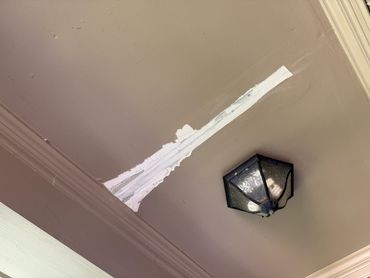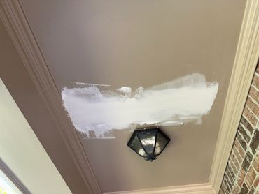 Brian and Allison are new clients of our in Arrington, TN that I had recently replaced an exterior door for, and completed a ceiling repair for them as well. They called me back out to do a ceiling repair over their front porch, and match their existing paint. First I used a PVA primer before painting after I sanded the final top coat of joint compound.