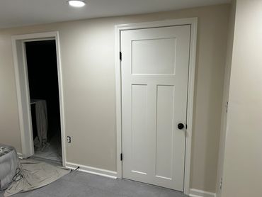 Along with a few smaller tasks this past week that are not pictured here, I finished up with the painting of Lisa's doors, jambs and casings for the Guest Bedroom, Guest Bathroom, kitchen pantry, and Master Bathroom downstairs. Including two coats of paint on the doors using a foam roller to give them a smooth finish. We're still waiting for the delivery of the 36" Bi-fold doors for the Guest Bedroom.