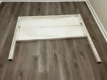 Lisa also asked me to modify her 52" headboard in her Guest Bedroom to fit under her window which is 45". I cut out a 7" section out of the main support legs. This following week I will mend the cut pieces using wood glue with a wooden dowel, and mending braces. Then assemble the rest of the bed frame.