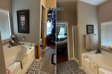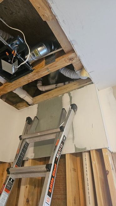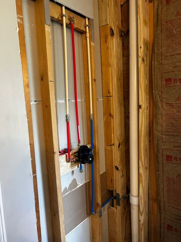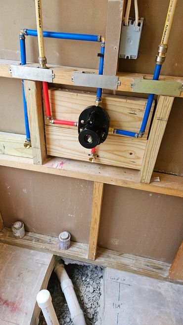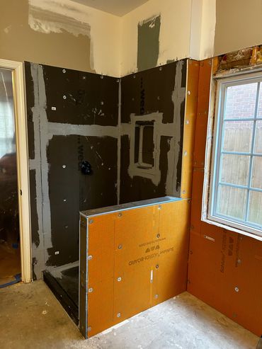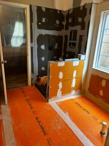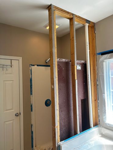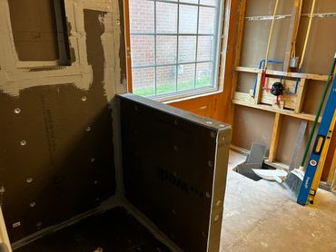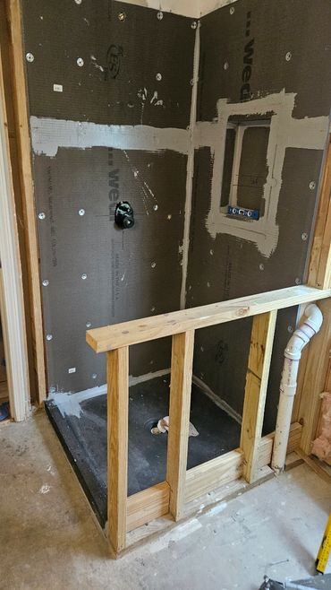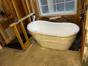 The shower & tub replacement project continues at our clients Ricky & Darlene's house. Our new team member Dan did a great job roughing in new valves for both the shower and the tub. After some more framing and blocking which was needed before we install the new Wedi system shower pan and walls for the shower. We will also be using the Schluter wall system for around the tub, and then it will all be tiled in. The tub train was also relocated to sit under the new free standing tub.