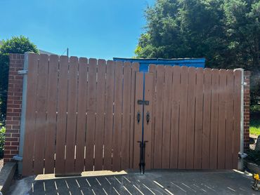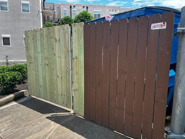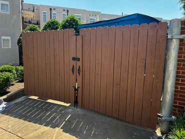 This past week our Pro Painter Krys and I finished up the dumpster surround fence gate repair & stain project that we started the week before at the Midtown Lofts in Nashville for The Verdei Group.