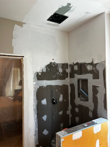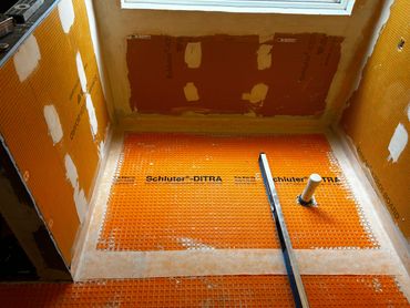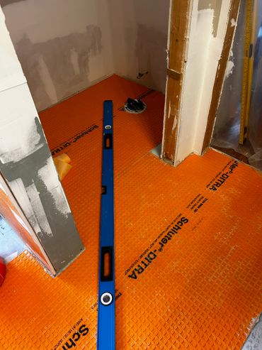 This next week we plan to finish waterproofing the walls, and then prepare the floor for the new large format tile (24" x 48"), which will be used throughout the shower and tub surround as well.