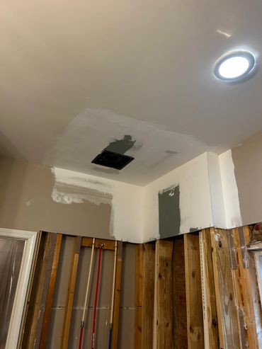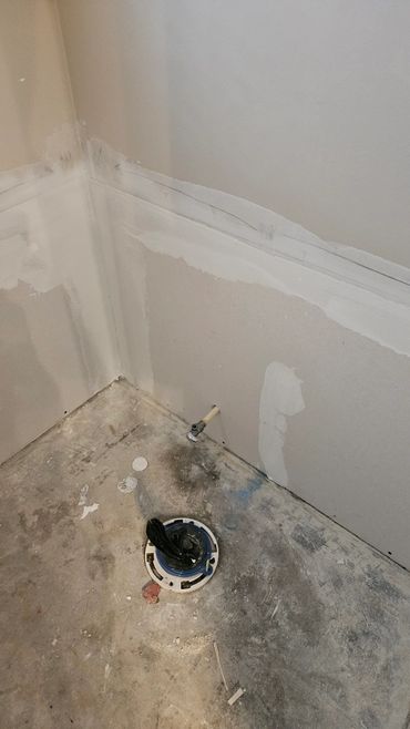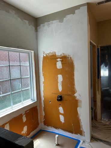 The shower/tub replacement continues for our regular clients, Ricky & Darlene. We originally were called out there after they had a drain stoppage, and their toilet backed up, then water flooded there toilet room. An abatement company came and cleaned everything up, and cut the damaged drywall out 2 feet up the wall. Ricky wanted us to replace the drywall, and finish the wall. However, they have been contemplating to update their bathroom for years, and now are using this opportunity to get it done, and they wanted our team to do it.