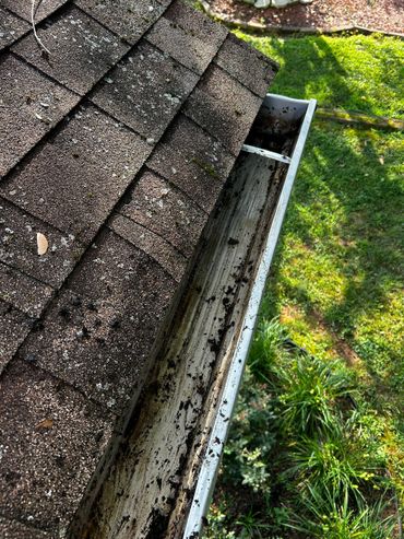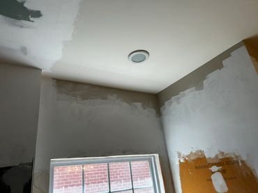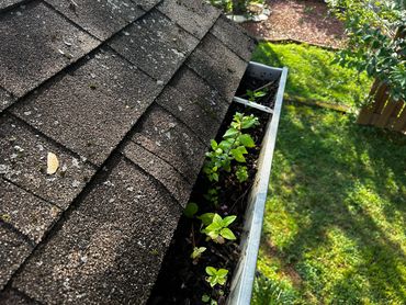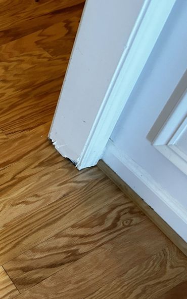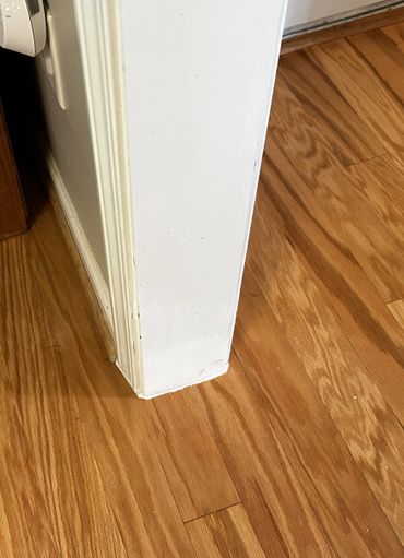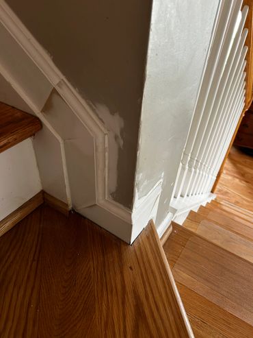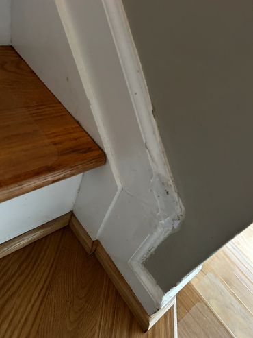 Between days at Ricky's I was able to service a few other clients of ours, which allowed for tiles to set. 7 of our new client's walk through drywall jambs were damaged during their new flooring installation, and called me to see what I could do about them. I used drywall mud to shape them, and then I caulked the bottoms of them. I also replaced sections of baseboard trim on her stairs that their dog chewed up, then filled, caulked, and sanded it. I'm going back there this upcoming week to prime & paint all of these areas. I also cleared out the gutters for a new client that hadn't had them cleared in a few years, and there were plants taking root in some sections of her gutters, which I hadn't seen before.
