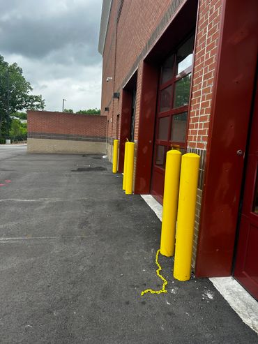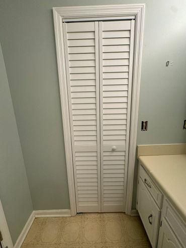 Meanwhile, while Dan was working at the shower/tub project, I ran around servicing our other clients needs including a new vanity light fixture, bi-fold door, and re-attached some crown molding in a kitchen. I engaged in a few small projects last week, and some aren't pictured here. Including a small task for BJ's Warehouse Club where I covered the cement bollards with plastic covers at their tire bay that provides softer protection for cars bumping into them by accident.