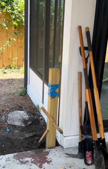 I serviced other clients in between phases of the tile work. Along with some other tasks not pictured here I mounted a TV, and started to set posts for the remaining fence run along the car port at Lisa's house.