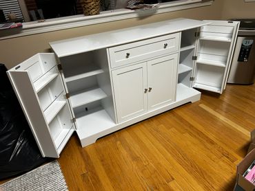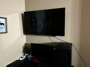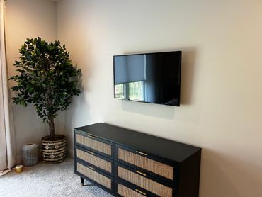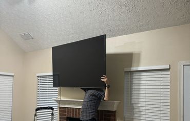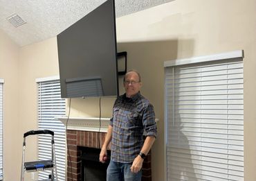 A couple weeks ago in Franklin, TN, my friend J'Anna who's in the process of moving into a new house just down the block from her current home took a couple pics of me installing her living room TV in her new living room. After I took it down at the old location, and drove it to the new place. I also re-hung 1 of 2 TVs in one of the bedrooms (not pictured here). This past week I went back and re-hung the TV in her Master Bedroom, and the 2nd TV in the other bedroom that I installed one the last time I was there. I also assembled a new kitchen hutch for her as well.