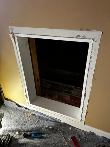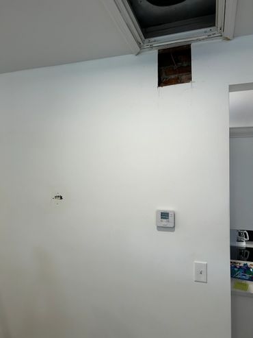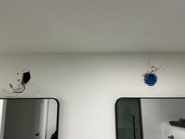 Not a whole bunch was done this past week, but I started to prepare two client's homes for a couple paint projects. At my friend & client Lisa's house I moved her thermostat over from the middle of the wall closer to the light switch so it could be reached easier. I then patched the holes that I needed to make to move it. I also removed her door casings in preparation for the replacement of all her interior doors so I could finish the wall smoother before I paint it. I also removed a couple of light fixtures in Lisa's Master Bathroom to prepare for paint, and I will be adding a light box in the wall for the left side light fixture which wasn't done by the original Contractor.