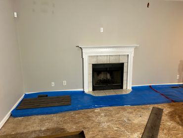 I also re-visited my regular client, Ashley's fireplace project where here and her sister did a great job installing the faux stone face. I installed the new mantle, and mounted her TV. I also re-installed her baseboard. She plans to finish the hearth after the new stone is installed on the top of the hearth.
