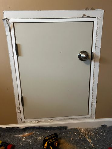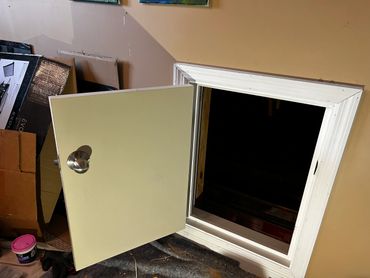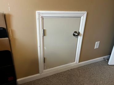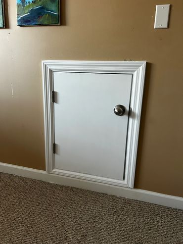 During the week of Christmas I engaged in a few small tasks. The week before, Bill from The Verdei Group Property Management, a regular client of ours that has given us a large amount of work in the past called me to tackle a small attic door project at his home. I first installed a new jamb & stop using some 1" x 6" material, then cut a section from a full sized slab door to make a small attic door. I used full sized door hardware also that matches the other doors around the house. Then I came back during this past week to paint the door, jamb, and trim.