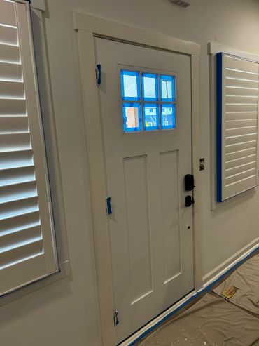 This past week was a busy painting week, but first installed the cedar trim around my client Anjie's front door in Hermitage. Anjie volunteered to put the coat of clear wood sealer on it.