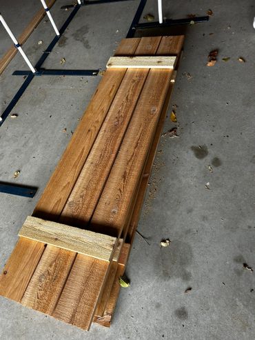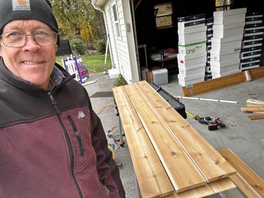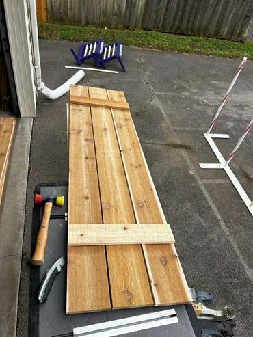 Later in the week I went back to our client Anjie's house to assemble the new cedar shutters that I will be installing on the front of her house next week after she paints them the color she wants.