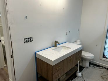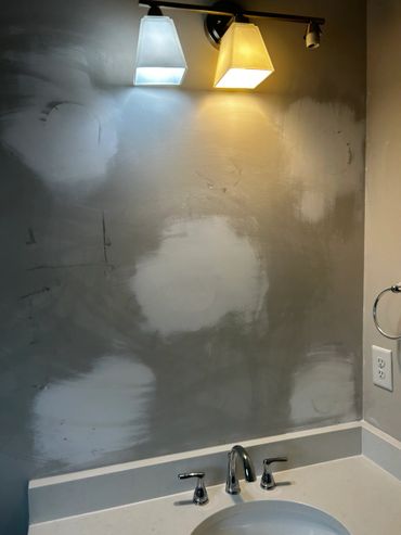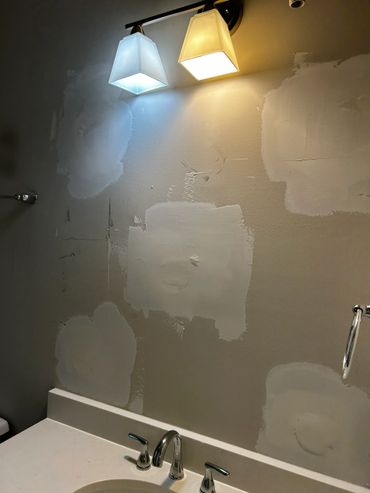 Closer to home I worked on skimming a couple coats of drywall mud over some tears that occurred when our clients removed a bathroom mirror that was adhered to the wall. The have a painting company that will finish it out when they come to paint their house later.