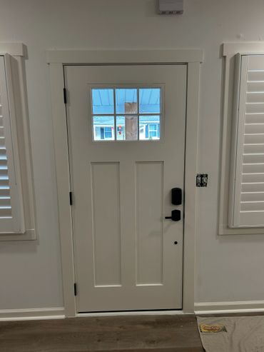 John, a new regular client that lives in Nashville decided that he wanted his over 60 year old front door replaced. The old door was about 5 inches taller, and 2 inches deeper than the new one that he chose. The lath & plaster walls are thicker than most of the walls of newer homes, and they used a door with a deeper door jamb. Therefore I had to get creative and add extra material above the door to fill it in, and than added new exterior trim to fill in the depth and the height. I have to go back and finish out the wall on the inside also. Then paint the door and all the trim, inside and out.