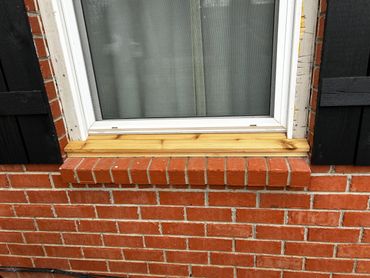 I also returned to our client Anjie's house this past week to continue with her window trim replacement. I had replaced the trim & sill on her 3 entry way windows with Cedar, but the two other windows at the front of her house still needed to be done. I completed one, and will complete the other one the following week, and caulk them both. The 2nd window will be featured in the next Projects of the Week photo album. I also installed a piece of 1/4 round molding that Anjie painted along a large vertical gap between the brick and the wood trim by her front door.