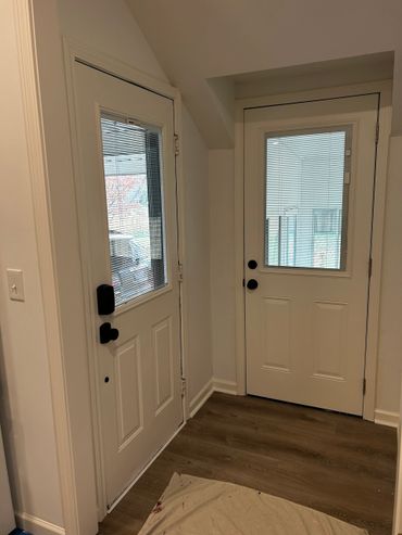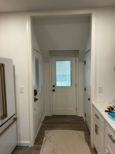 I finished up with the painting on the main level of Lisa's house as it slowly becomes ready for move in time. I also removed all the doors on the main level and downstairs in preparation for the installation of new doors which will be delivered soon. Then after the new doors & casings are installed I will continue painting them, and the entire downstairs.