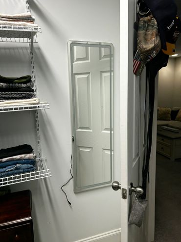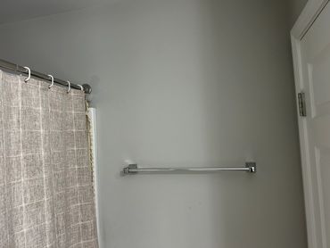 At the end of the week I went back to my old neighborhood, Walton's Grove where I serviced two new clients. For one of them I installed a new hanging garage storage rack. The other client I had gone to a couple weeks before to patch some holes above her vanity that were made when they removed their old mirror. This time I installed a new hanging mirror after they had the bathroom painted.