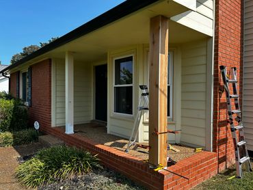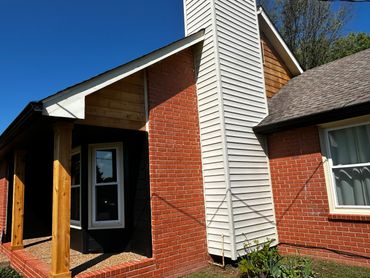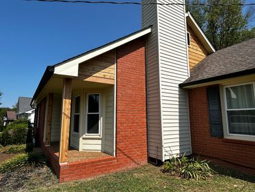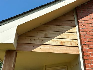 I've been working on ongoing projects around my client Anjie's home in Hermitage, and this past week I applied a coat of clear sealant on all of her new cedar siding that I recently installed. She applied the clear coat on the cedar that I wrapped around the posts on her front patio. She also has been painting the exterior trim around the house as well. She wants me to paint the trim that's higher up on the house this coming week.