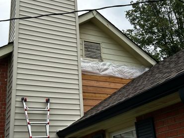 A repeat past client of ours called me back to replace some old siding of hers that is almost 40 years old, and it showed. Before her roof was replaced about 15 years ago, her house sustained some water damage in various areas that had never been addressed, and this siding I replaced was one of those areas. As well as her new attic vent cover that my client did a great job painting. I'll also be working in other areas around the exterior that sustained water damage in the coming weeks. Mostly just trim and moldings.