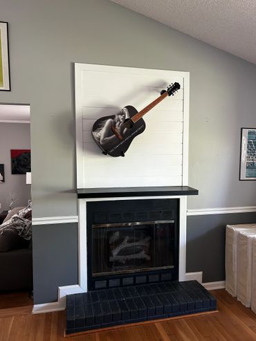 This past week was full of many various tasks at a few different locations, and my Nephew has returned to assist for the next few weeks. I took a break from my client in Hermitage's siding and exterior trim project while she makes a few more decisions on materials and colors. Instead I engaged in a couple other tasks for her including a new exterior door on her garage, and then installed shiplap & trim above her fireplace mantle so she could display her guitar.