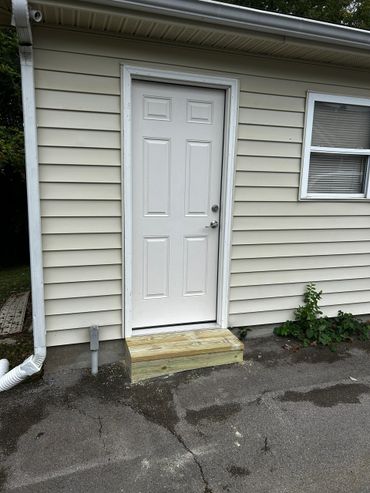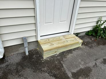 This past week a fence job that we had lined up was postponed due to shipment delays, but that allowed me to service a couple of regular clients instead. I installed a new garage entry door the week before. This past week I built & installed a new step/landing in front of the door which also helps support the door threshold.
