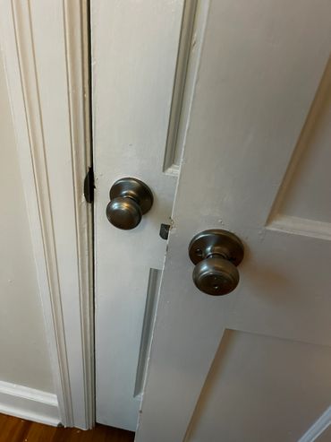 A new client who's in the music industry, and lives in Nashville contacted me about helping him to get his recently purchased home ready to rent. I suggested a few things, including the replacement of all the dated door hardware. I replaced all the knobs, hinges, and installed new hinge door stops on all the doors as well. Including the exterior doors. Many of the doors needed new holes bored to accept the new knobs. The old knobs were at least 60 years old. He also had some mold growing around 8 of his 9 air/heater vents from a leak, so I cleaned & treated the mold, and applied primer with mildewcide. I then applied a white ceiling paint, but he's going to have all the ceilings painted at a later date. I then installed new register covers. We'll also be starting the installation of a new front door after Halloween.