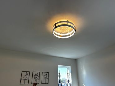 Then lastly, another regular client of mine Melissa called me back to install a few very unique types of ceiling fan/lights in her new home that her and her family just moved into in Mount Juliet. I've never seen fans like these. They are very lightweight, and do not require a "ceiling fan ready" box in the ceiling, and can easily replace a standard light fixture.